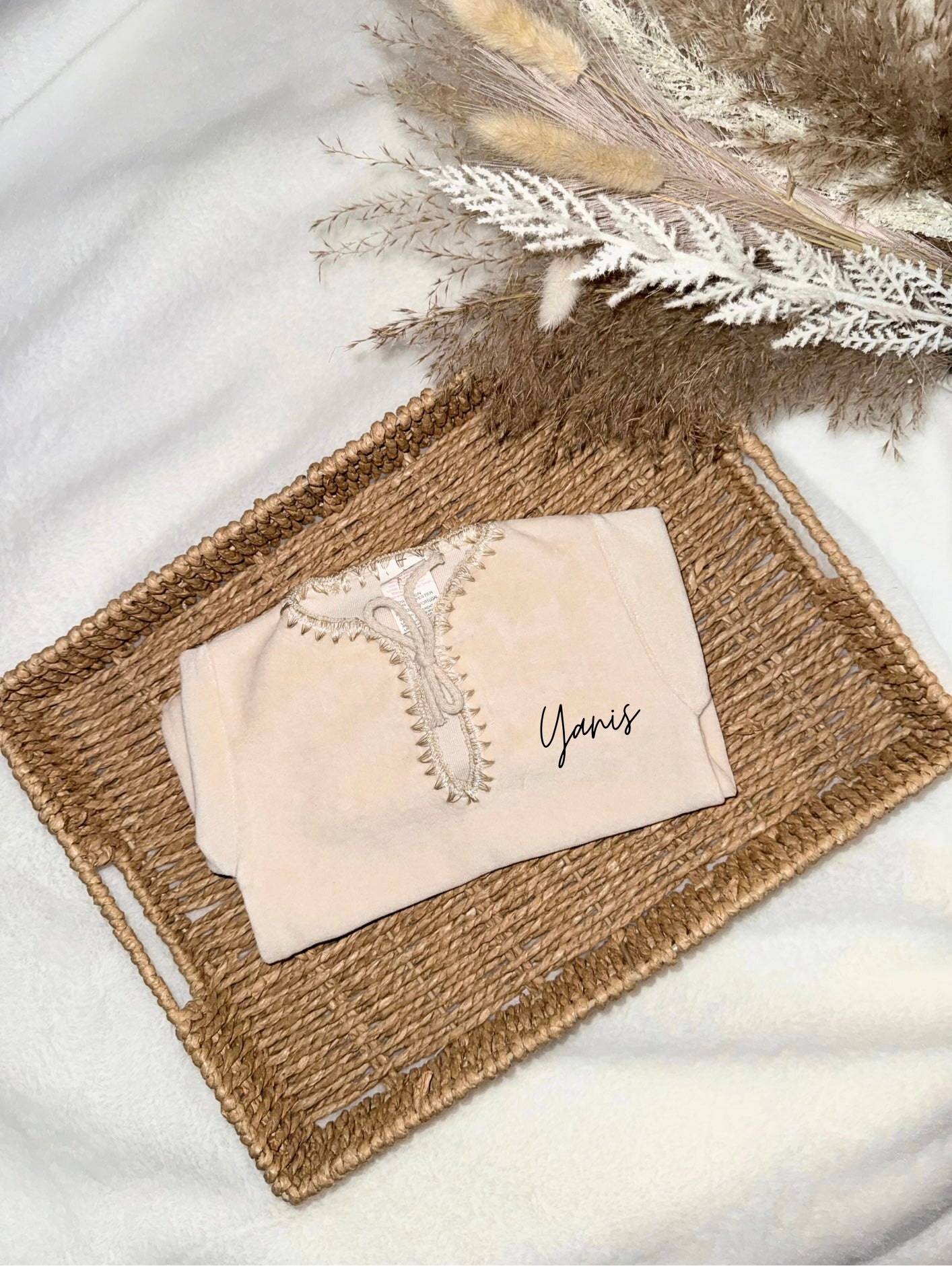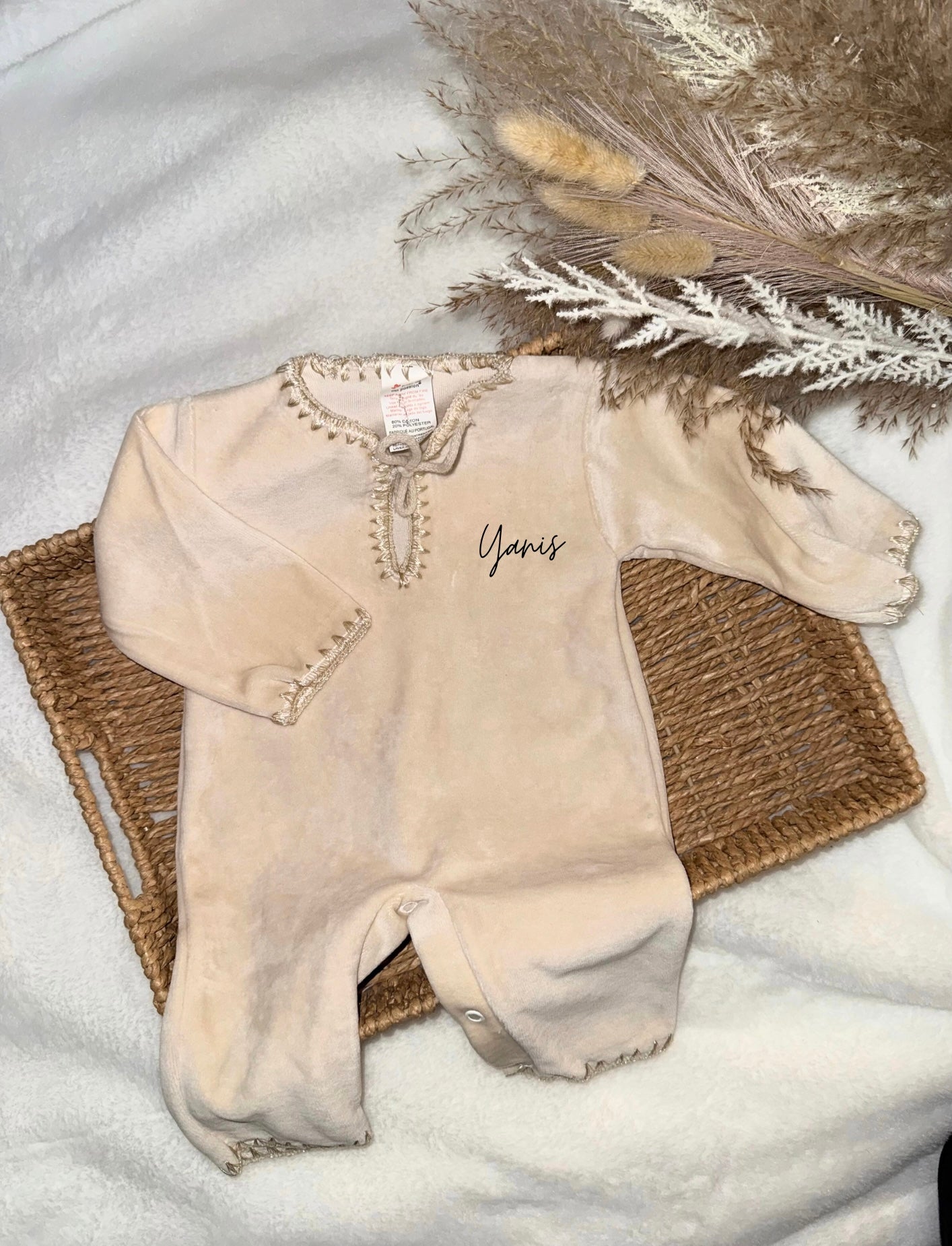 Craquez pour ce jabador personnalisé couleur beige, une tenue élégante et pleine de douceur pour votre petit trésor ✨